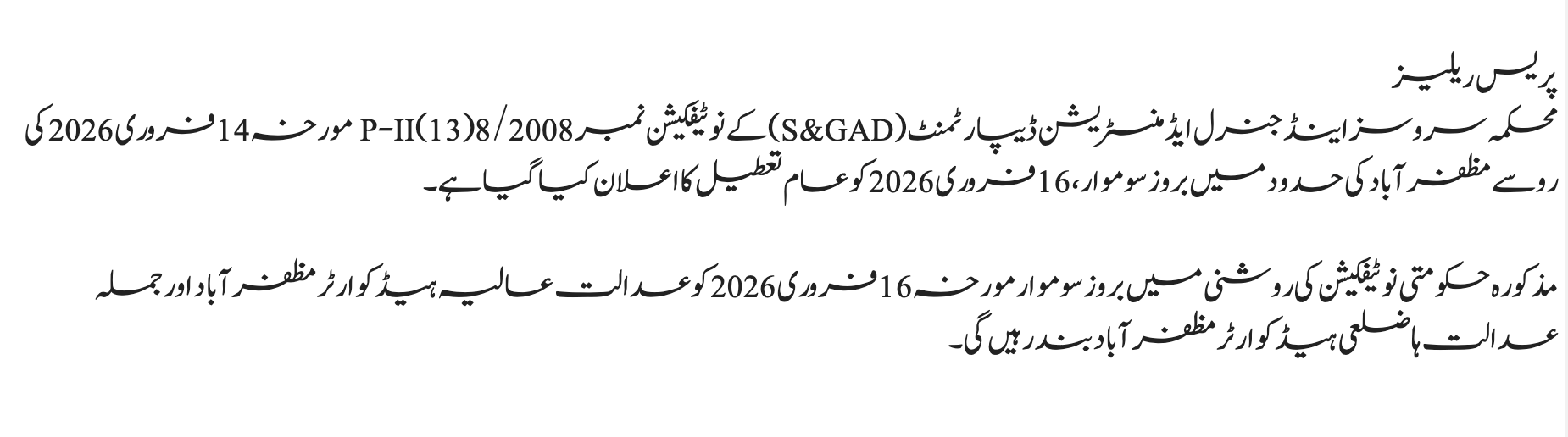 | 1478/2024 | Aaamir Mehboob v. Azad Govt. etc. | 16-01-2026 | View |